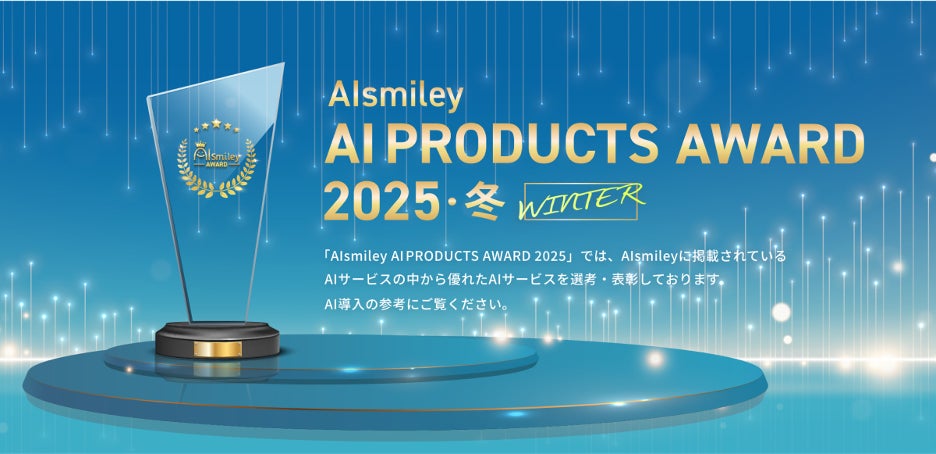 「AIsmiley AI PRODUCTS AWARD 2025 WINTER」の詳細は、公式サイト(https://aismiley.co.jp/aismiley-products-award-2025-winter/)でご覧いただけます。