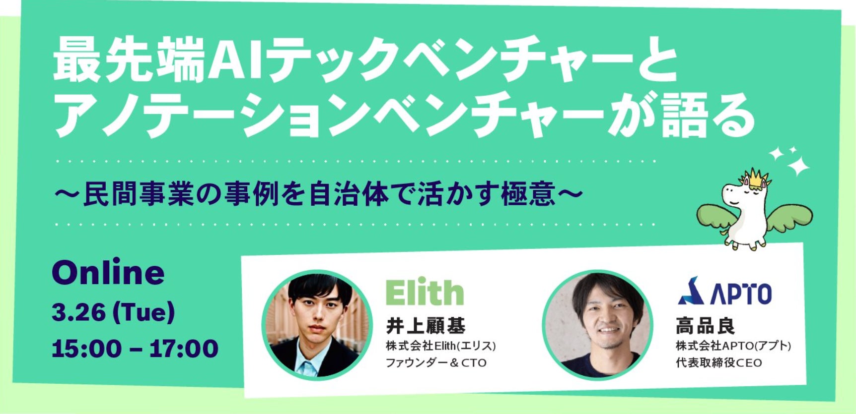 【3月26日ウェビナー開催!】最先端AIテックベンチャーとアノテーションベンチャーが語る〜民間事業の事例を自治体で活かす極意~