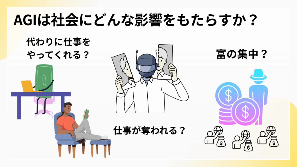しかし、AGIは「労働力」としてだけではなく「資本」の一形態として機能し、その所有者が経済的利益を享受することができるとも捉えられます。また、それはAIを使えるという能力をも「資本」と捉えることができます。それらのような富が資本所有者に集中し、極端な富の集中、不平等の拡大、社会流動性の低下を招くリスクがあると考えることもできます。