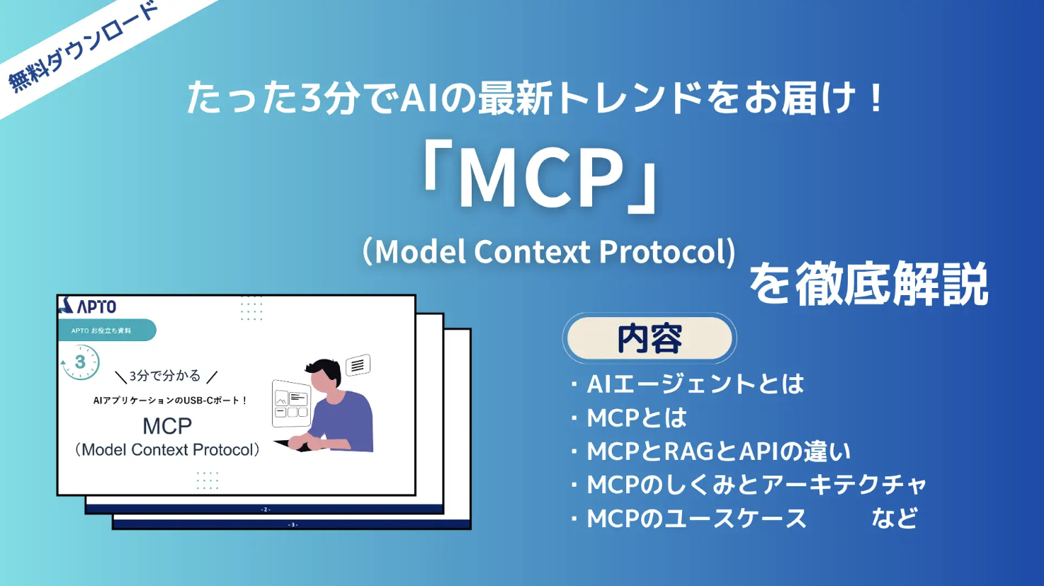 3分で読める内容にまとめられており、AIエージェントの最新標準オープンプロトコルであるMCPに関心を持つすべての方に役立てていただける資料となっています。