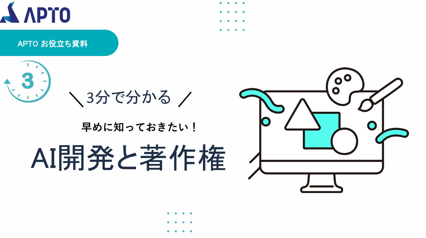 株式会社APTO(本社:東京都渋谷区、代表:高品良)は、AI開発における著作権に関するホワイトペーパー「AI開発と著作権」を公開しました。本ホワイトペーパーでは、AIの開発と利用において重要となる著作権の基本知識を分かりやすく解説しています。